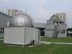 El telescopio principal del Observatorio es un 40 centímetros Cassegrain reflector de una distancia focal combinada de 520 cm.[2] El subtelescopio es un 15 cm apocromático refractor Kepler con una distancia focal de 180 cm. La montura ecuatorial para los telescopios se diseñó para la ubicación única de Singapur; la Yugo inglés que la acompaña proporciona la estabilidad necesaria para los mecanismos de accionamiento y seguimiento. La cúpula de acero inoxidable 5,5 m puede girar en cualquier dirección y su obturador puede abrirse para enfocar objetos interesantes en el cielo.