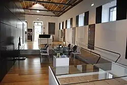 Además de esto, también consta de zona de reproducción de audiovisuales, folletos informativos y vitrinas, donde podemos encontrar documentos y maquetas relacionadas con el cementerio.