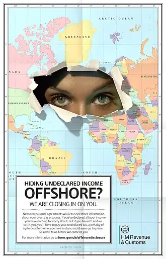 - Evasión de impuestos. Aunque los números son difíciles de determinar, se cree que las personas de las naciones ricas evaden ilegalmente los impuestos al no declarar ganancias de los vehículos que poseen. Las multinacionales, incluidas GlaxoSmithKline y Sony, han sido acusadas de transferir beneficios de las jurisdicciones con impuestos más altos en los que se realizan a centros extraterritoriales libres de impuestos.[41]