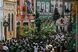 El 2 de julio de 1823 marcó la liberación de Bahía del dominio portugués, un año después de la Independencia oficial de Brasil. Por ello, durante el feriado estatal,[12] bloques, carruajes, fanfarria, manifestantes y espectadores de la Fiesta de la Independencia del estado caminan desde Lapinha hasta Campo Grande, pasando por el Terreiro de Jesus, en Pelourinho, recorriendo toda la extensión del Centro Histórico.[13] Desde 1840 o 1849 (se desconoce el año exacto), el Caboclo y la Cabocla son considerados los símbolos de la libertad del Desfile 2 de julio. Estas figuras representan, respectivamente, a los indígenas y mestizos de origen bahiano que lucharon por la independencia del Estado hasta el 2 de julio de 1823, y la figura femenina en esa misma lucha.[14]