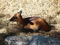 - ↑ IUCN SSC Antelope Specialist Group (2008). «Cephalophus rufilatus». Lista Roja de especies amenazadas de la UICN 2008 (en inglés). ISSN 2307-8235. Consultado el 16 de enero de 2009.