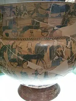 - ↑ García Cano, José Miguel y Gil González, Francisco (2009). «La cerámica ática de figuras rojas: talleres y comercio (siglo IV a. C.)». Murcia: Universidad de Murcia. p. 140. ISBN 978-84-8371-908-4.