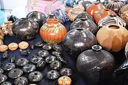 - estilo "grafito", que da una tonalidad negra y brillante al tratamiento del barro amarillo, ideada por Macario Ortiz