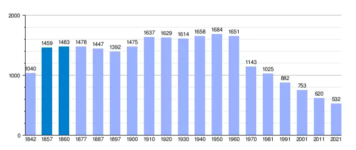 Gráfica de evolución demográfica de Cerezo de Río Tirón[3]​ entre 1842 y 2021