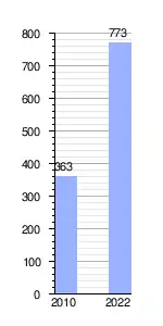| Gráfica de evolución demográfica de Cerritos y Altos de La Bolsa entre 2010 y 2022 |