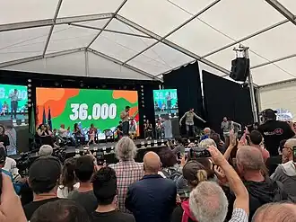 ![]() Subasta del certamen de 2024, donde se subastó el queso ganador por 36.000 euros. | ||