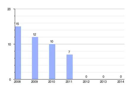 | Gráfica de evolución de la deuda viva del ayuntamiento entre 2008 y 2014 |