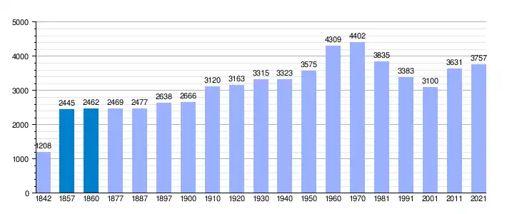 | Gráfica de evolución demográfica de Cestona[3] entre 1842 y 2021 |