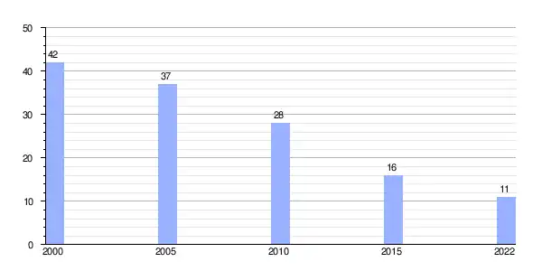 | Gráfica de evolución demográfica de Cesures (aldea) entre 2000 y 2022 |