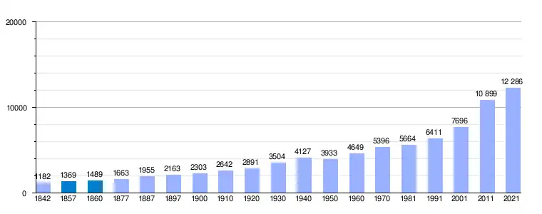 | Gráfica de evolución demográfica de Ceutí[7] entre 1842 y 2021 |