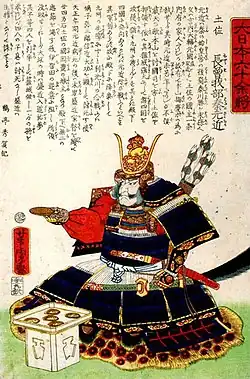 - ↑ a b c Turnbull, Stephen (1998). El libro de consulta samurái. Cassell & Co. p. 216,218,227. ISBN 1854095234.