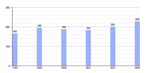 | Gráfica de evolución demográfica de Champroy entre 1793 y 1836 |