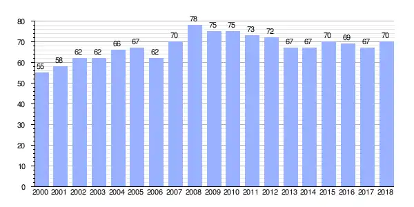 | Gráfica de evolución demográfica de Chancelas entre 2000 y 2018 |
