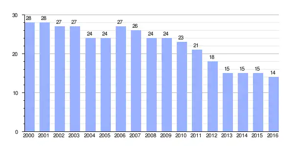 Gráfica de evolución demográfica de Chandevillar[3]​ entre 2000 y 2016