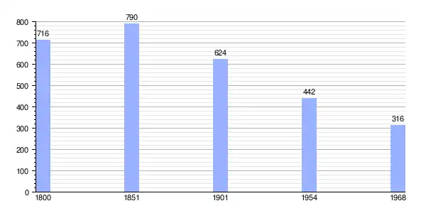 | Gráfica de evolución demográfica de Chantrezac entre 1800 y 1968 |