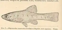 - ↑ Meek, S.E., 1902. «A contribution to the ichthyology of Mexico». Field Columbian Museum, Zoological Series 3(6):63-128, Pls.14-31.