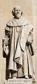 - Retrato de Mathieu Molé, canciller de Francia (1584-1656) (1840), estatua de figura en pie mayor escala que el natural, escayola, Versalles, Palacio de Versalles y del Trianon