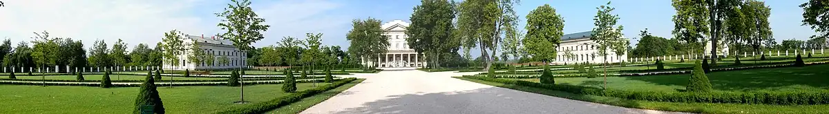 El templo de la Amistad fue el primer edificio en Pavlovsk, seguido por el palacio principal.[28] El Pavlovsk de Cameron estaba lejos de la visión de Pablo de lo que debería ser una residencia imperial: le faltaban fosos, fuertes y toda la parafernalia militar tan querida por Pablo; «Cameron creó un mundo marcadamente privado para el Gran Duque. El palacio podría haber pertenecido a cualquiera... no al zar de Rusia en espera».[30]