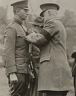 El mayor general Clarence R. Edwards condecorando con la Medalla de Honor al Tte. Coronel Charles W. Whittlesey en el parque de Boston Common.