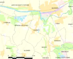 - Situación de Charmoy en un mapa de Francia y de comunas limítrofes Archivado el 7 de enero de 2009 en Wayback Machine. (en francés)