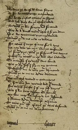 - ↑ Potter, Russell A., "Chaucer and the Authority of Language: The Politics and Poetics of the Vernacular in Late Medieval England", Assays VI (Carnegie-Mellon Press, 1991), p. 91.