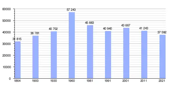 | Gráfica de evolución demográfica de Chaves entre 1864 y 2021 |