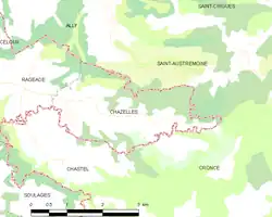 Chazelles es una población y comuna francesa, situada en la región de Auvernia, departamento de Cantal, en el distrito de Saint-Flour y cantón de Ruynes-en-Margeride.