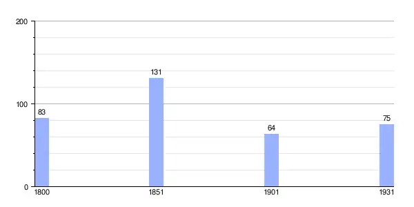 | Gráfica de evolución demográfica de Chebrac entre 1800 y 1931 |