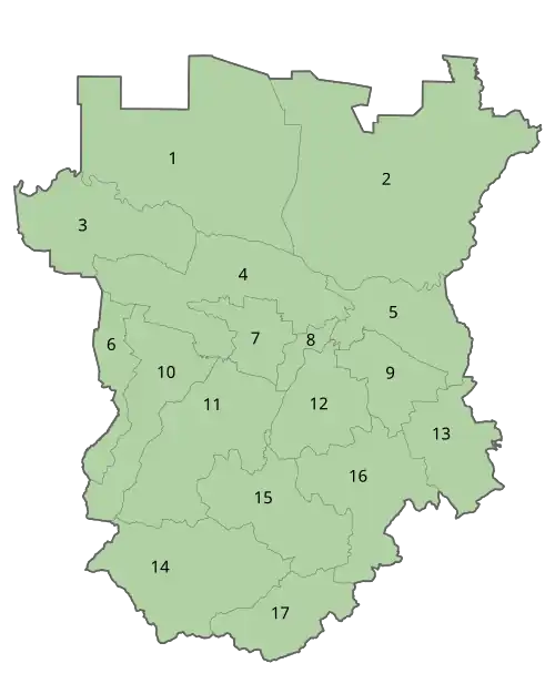 | # | Distrito | Nombre checheno | Centro administrativo |