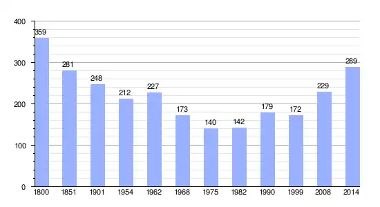Los datos demográficos contemplados en este gráfico de la comuna de Cheffreville-Tonnencourt[4] se han cogido de 1800 a 1999 de la página francesa EHESS/Cassini, y los demás datos de la página del INSEE.[5]