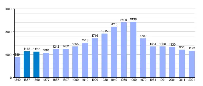 Gráfica de evolución demográfica de Cheles[3]​ entre 1842 y 2021