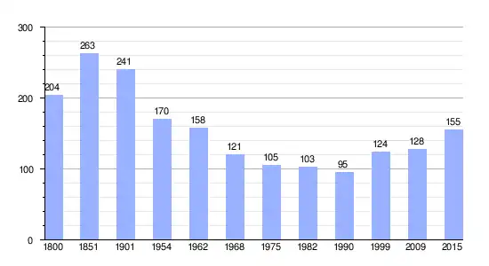 Los datos demográficos contemplados en este gráfico de la comuna de Chervettes[4] se han cogido de 1800 a 1999 de la página francesa EHESS/Cassini, y los demás datos de la página del INSEE.[5]