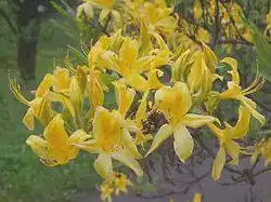 Sin embargo, otra opinión apunta a una especie dorada o amarilla de azalea, o bien a una rojiza, Rhododendron myrtifolium.