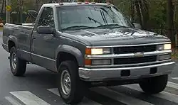 El paquete "Sport" fue reintroducido en 1990, esta vez con faros compuestos y diferentes emblemas en las cabeceras. Este es uno de los looks más frecuentemente falsificada para los camiones Chevrolet pero decodificación VIN revelará si se trata de un verdadero "Sport" o no. Modelos 1994 recibieron una nueva fascia delantera, CHMSL mandato federal, muchos nuevos colores exteriores que incluye una nueva opción de dos colores en los paneles inferiores, y nuevas combinaciones de neumáticos y ruedas. Todos los modelos 1995 recibieron un nuevo interior que incluyó un nuevo volante que contiene una bolsa de aire del lado del conductor, un nuevo tablero que contiene una radio más central montado, dial-operado sistema de climatización y un clúster mejorada calibre. Nuevos paneles de las puertas delanteras y nuevos asientos también fueron incluidos. Finales de 1995 los 1500 series y 2500 series de camiones de tracción en dos ruedas se reunieron con la transmisión 4L60E más nuevo y el 700 R4 ya no se utilizó en este punto. Cambia exterior este año incluyó un trabajo de pintura en dos tonos especiales, disponibles en muchas variedades diferentes nuevo brillo plegables negros espejos exteriores y los tiradores de las puertas se cambió de un acabado negro brillo suave a una textura, acabado satinado. En 1996, una tercera puerta montada del lado del pasajero era opcional en los modelos de cabina extendida. Se incluyó una nueva gama de motores. Los motores "Vortec" significaron aumentos de HP a través de V6 de gasolina y motores de bloque pequeño V8. El V8 6.2 diésel fue caída.