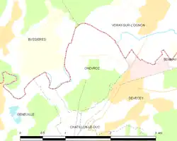 Chevroz es una población y comuna francesa, en la región de Franco Condado, departamento de Doubs, en el distrito de Besançon y cantón de Marchaux.