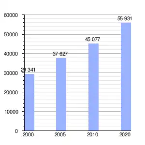 Cuenta con 55 931 habitantes lo que representa un incremento promedio de 2.2% anual en el período 2010-2020 sobre la base de los 45 077 habitantes registrados en el censo anterior. Ocupa una superficie de 16.26 km², lo que determina al año 2020 una densidad de 3439 hab/km².[7]
