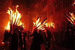 En la noche del domingo después del Miércoles de ceniza y la noche antes de la Morgestraich, que da inicio al carnaval (Fasnacht) en la ciudad de Basilea, una procesión de gente lleva brasas quemadas de pino (llamadas Chienbäse) alrededor de hogueras.