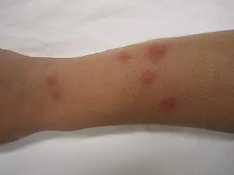 - ↑ Jerome Goddard; Richard deShazo (2009). "Bed bugs (Cimex lectularius) and clinical consequences of their bites". Journal of the American Medical Association. 301 (13): 1358–1366. doi:10.1001/jama.2009.405. PMID 19336711.