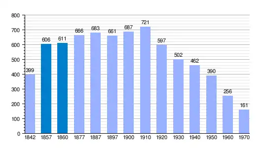 | Gráfica de evolución demográfica de Chiva de Morella[1] entre 1842 y 1970 |