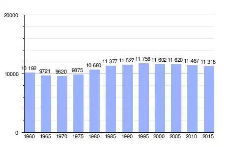 | Gráfica de evolución demográfica de Chiyoda entre 1960 y 2015 |