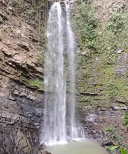 Tiene una altura aproximada de 55 metros y es parte del atractivo del parque natural Montaña de los Pozuelos. Forma parte de una serie de saltos y cascadas que se forman en el cauce del río Maria.