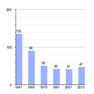 | Gráfica de evolución demográfica de Chosmes[1] entre 1947 y 2010 |