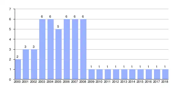 | Gráfica de evolución demográfica de Chousas entre 2000 y 2018 |