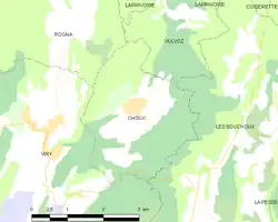 Choux es una localidad y comuna francesa situada en la región de Franco Condado, departamento de Jura, en el distrito de Saint-Claude y cantón de Bouchoux.