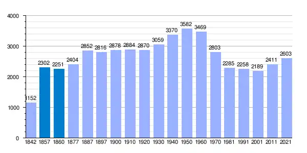 | Gráfica de evolución demográfica de Chozas de Abajo[6] entre 1842 y 2021 |