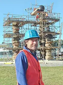 - ↑ Aparece retratado frente a una de sus esculturas, casi terminada e instalada en su ciudad natal Kerikeri el 26 de marzo de 2009. Un benefactor anónimo pagó 500.000 dólares para sufragar los gastos de construcción. Far North District Council, Booth Sculpture Nears Completion (link dead)