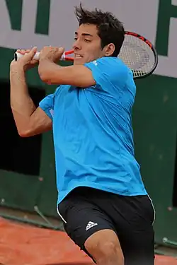 Así mismo, derrotó antes de los 20 años a tenistas importantes tales como Carlos Berlocq, Horacio Zeballos, Máximo González, Diego Schwartzman, Martín Alund, Flavio Cipolla, Nicolás Jarry, James Ward, Kyle Edmund, Kenny de Schepper, Rogerio Dutra Silva, Dušan Lajović, Andrej Martin, Florian Mayer, Borna Ćorić, Alexander Zverev, y Pere Riba.[35] Por tales logros fue considerado la gran promesa del tenis chileno.[36][37]