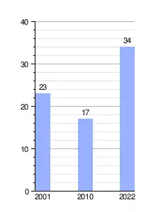 | Gráfica de evolución demográfica de Chuña Huasi entre 2001 y 2022 |