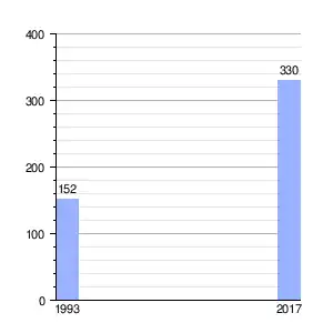 | Gráfica de evolución demográfica de Chulucanitas entre 1993 y 2017 |