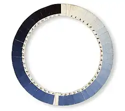 A Horace-Bénédict de Saussure, físico y alpinista suizo, se le atribuye la creación del cianómetro en la década de 1760.[1]Este dispositivo estaba compuesto por secciones numeradas y coloreadas que abarcaban desde el blanco hasta tonos progresivamente más oscuros de azul, utilizando azul de Prusia como pigmento y dispuestas en forma de círculo.[2]Los cianómetros se elaboraban manualmente, siguiendo una fórmula específica para la concentración de acuarela en cada sección, y se distribuían entre amigos y colegas naturalistas para ampliar el registro de observaciones.[1]En un artículo publicado en 1790, Saussure incluyó una ilustración de una rueda con 40 tonos, pero aclaró que esta era solo una representación simplificada para los lectores, ya que su cianómetro real contaba con 53 grados, desde el blanco (0) hasta el negro (52).[3]
